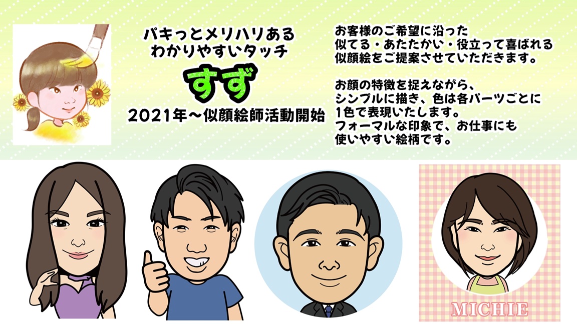 喜んで頂ける似顔絵を描かせて頂きたいので、ヒアリング時に細かいご希望や、良いお写真の提供をお願いいたします。
